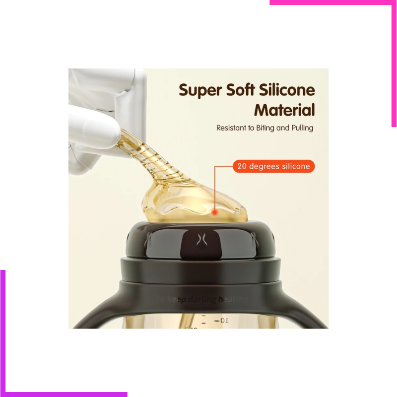 Ce biberon innovant est conçu pour offrir une alimentation plus confortable et naturelle à votre bébé. Grâce à sa paille gravitationnelle, le liquide reste accessible quel que soit l’angle d’inclinaison du biberon, permettant à l’enfant de boire facilement en position assise, inclinée ou allongée.