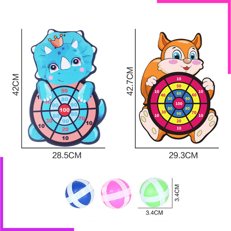 - Les fléchettes sont en mousse avec du velcro à l'extérieur, la cible est imprimé avec des animaux très mignon