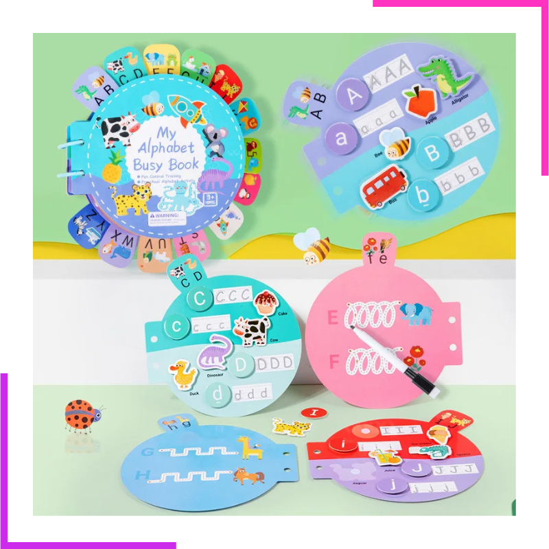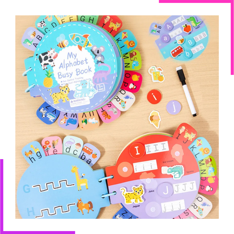 Ce livre éducatif coloré permet aux petits d’apprendre l’alphabet tout en développant leur motricité fine et leur coordination œil-main.
